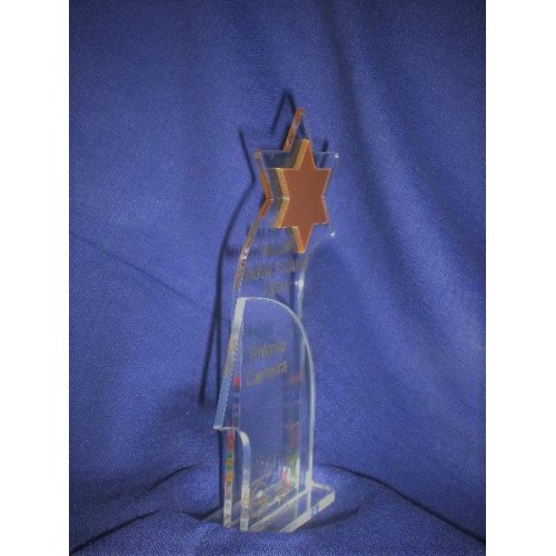 Troféu em acrílico com impressão direta e aplicação de acrilico de cor.