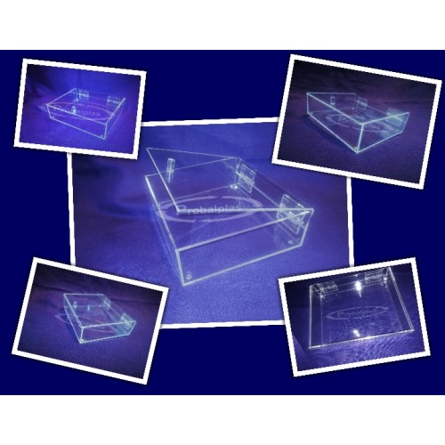 Caixa acrílica com dobradiças, perfeita para todas as ocasiões. Protege e não retira visibilidade.